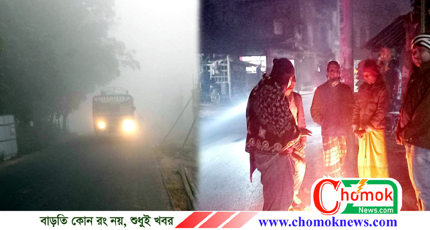 রাত থেকে ঘন কুয়াশায় প্রকৃতি ঢাকা পড়ছে। ভোরবেলা যেন ঘন কুয়াশার চাদরে ঢাকা পড়ে। ভোর যেন হয়েও হয় না। সূয্যের আলো দেখা যায় না। সকাল ১১ টার পর সূর্যের ক্ষিন আলো প্রকৃতির উপর আচড়ে পড়তে শুরু করে। ঘন কুয়াশার কারণে প্রতিদিনের কাজকর্ম কিছুটা দেরিতে শুরু হচ্ছে।