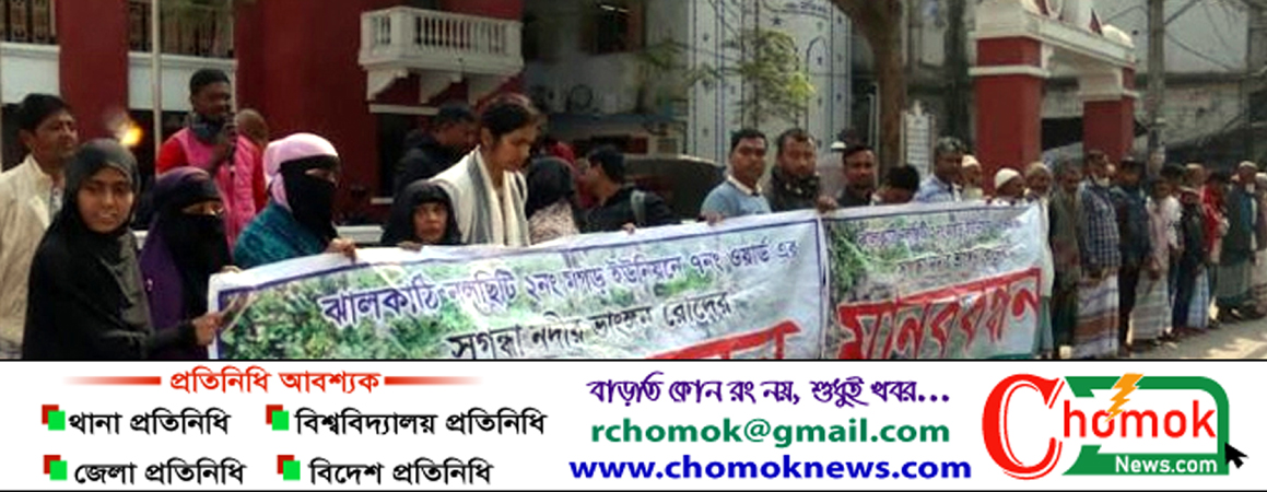 বরিশালে নদী ভাঙন প্রতিরোধে মানববন্ধন