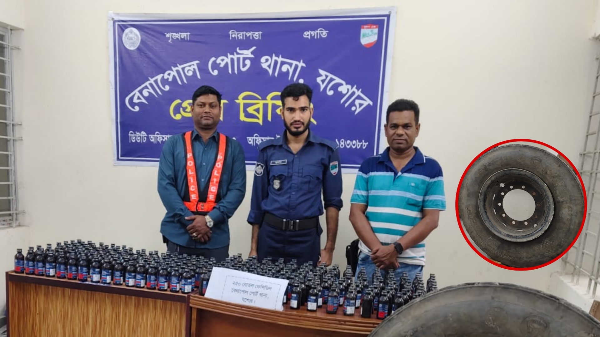 বেনাপোলে পুলিশের অভিযানে ট্রাকের টায়ার থেকে ফেনসিডিল উদ্ধার