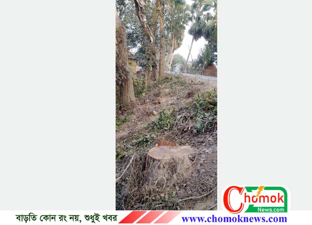 বোয়ালমারীতে সরকারি জায়গার গাছ কেটে নিলেন ইউপি সদস্য