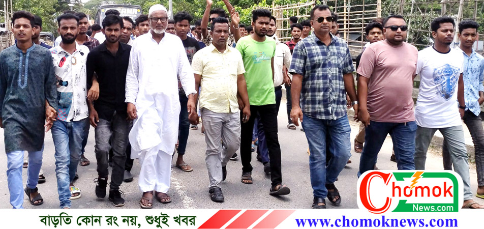 রোববার দুপুর সাড়ে ১২ টায় উপজেলা আওয়ামী লীগের দলীয় কার্যালয়ের সামনে থেকে একটি বিক্ষোভ মিছিল বের হয়ে শহরের প্রধান প্রধান সড়ক প্রদক্ষিণ শেষে সেখানে গিয়ে শেষ হয়।