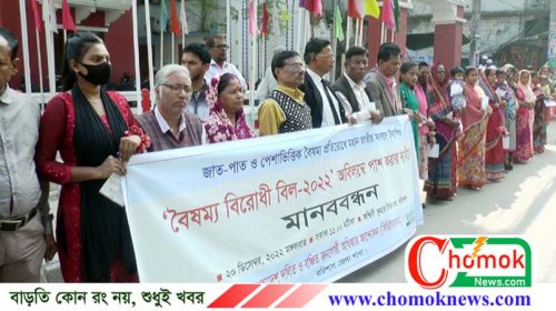 বৈষম্য বিরোধী বিল পাসের দাবিতে বরিশালে মানববন্ধন বরিশাল ব্যুরো : বৈষম্য বিরোধী বিল ২০২২ পাসের দাবিতে বরিশালে মানববন্ধন করা হয়েছে। বাংলাদেশ দলিত ও বঞ্চিত জনগোষ্ঠী অধিকার আন্দোলনের আয়োজনে এ মানববন্ধন…
