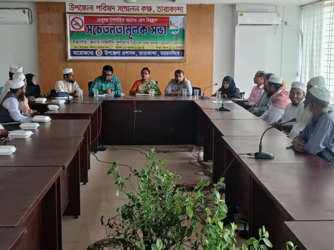 তারাকান্দায় ডেঙ্গুসহ মশাবাহিত ও অন্যান্য রোগ নিয়ন্ত্রণে সচেতনতামুলক সভা অনুষ্ঠিত