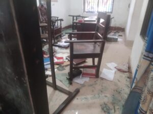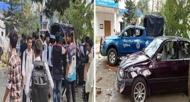 বুধবার ১২ ফেব্রুয়ারী বেলা সাড়ে ১১ টার দিকে এ ঘটনা ঘটে। এসময় থানার দরজা ও জানালা, আসবাবপত্র ও ৫ টি গাড়ী ভাংচুর করে।