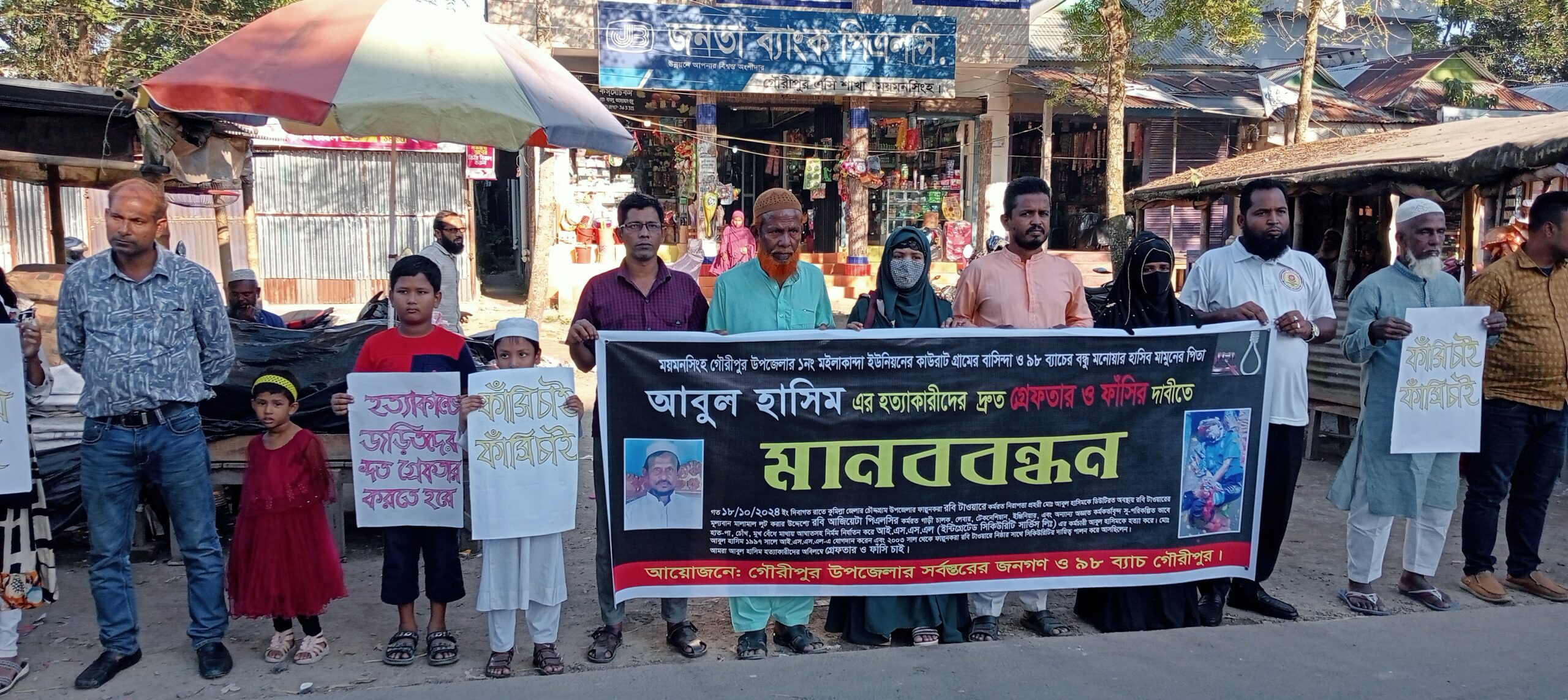 হাসিম হত্যাকাণ্ডের বিচারের দাবীতে গৌরীপুরে মানববন্ধন