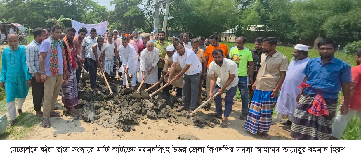 স্বেচ্ছাশ্রমে রাস্তা সংস্কারের মাধ্যমে গৌরীপুর বিএনপি নেতাকর্মীদের নববর্ষ উদযাপন