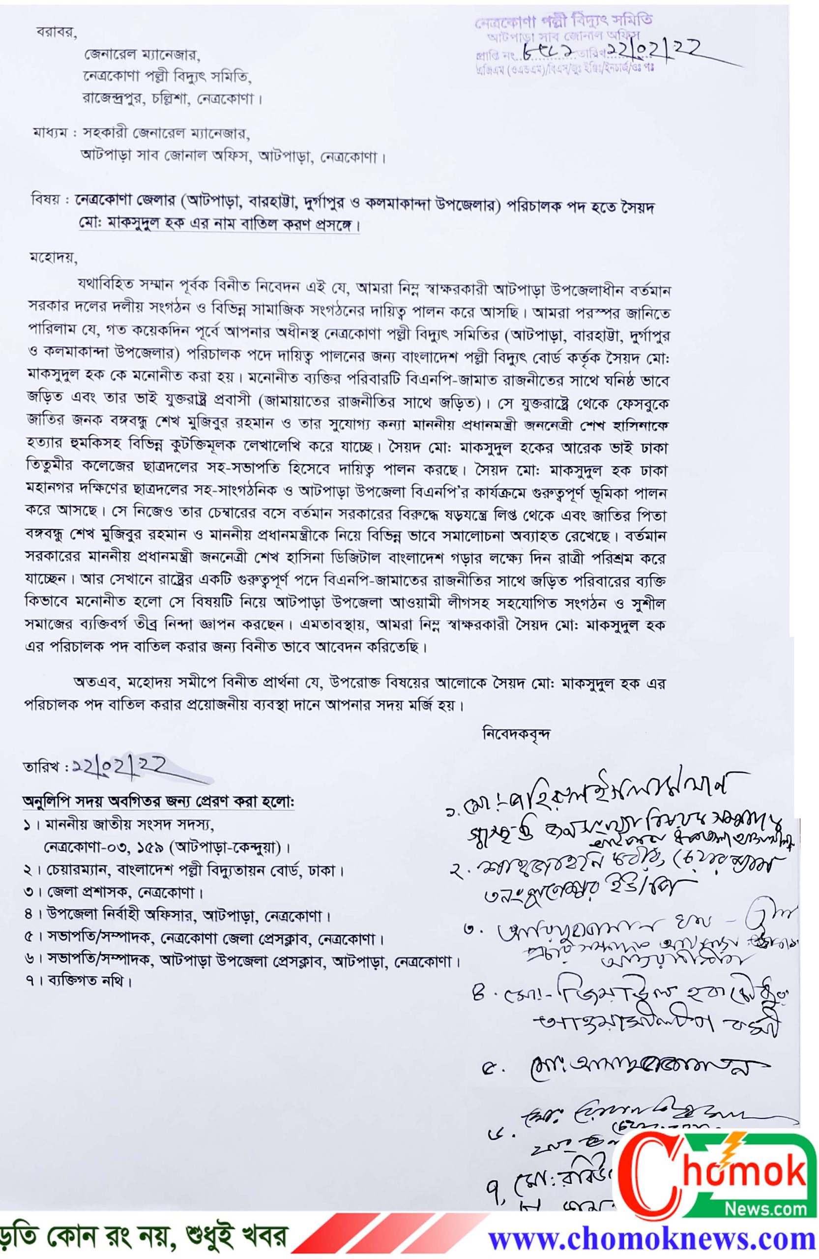আটপাড়া পল্লী বিদ্যুৎ সমিতির পরিচালক পদ বাতিলের অভিযোগ আটপাড়া (নেত্রকোণা) থেকে মো: আসাদুজ্জামান খান সোহাগ- বাংলাদেশ পল্লী বিদ্যুৎতায়ন বোর্ড কর্তৃক নেত্রকোণা পল্লী বিদ্যুৎ সমিতির পরিচালক পদে সৈয়দ মো: মাকসুদুল হককে…