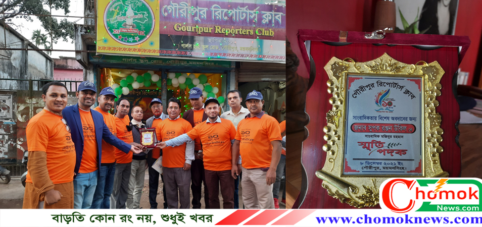 সাংবাদিক মুজিবর রহমান স্মৃতি পদক পেল চমক নিউজের গৌরীপুর প্রতিনিধি সুপক ময়মনসিংহ ব্যুরো- ময়মনসিংহের গৌরীপুর উপজেলায় গৌরীপুর রিপোর্টার্স ক্লাবের ১০ম প্রতিষ্ঠা বার্ষিকী উপলক্ষে করোনা কালীন সময় এবং সামাজিক দায়িত্ব বোধ…