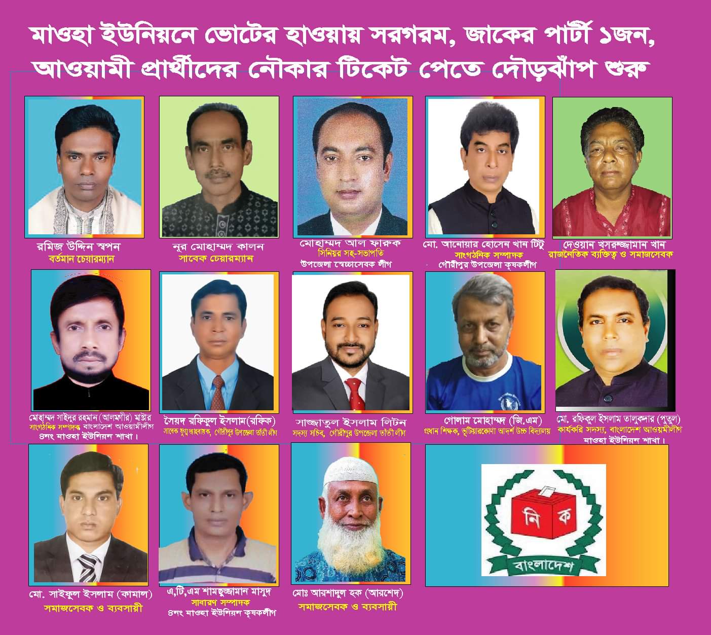 ইউপি নির্বাচনের একাল- সেকাল মোল্লা তানিয়া ইসলাম তমা- দেশে এবার ৬টি ধাপে পর্যায়ক্রমে শুরু হয়েছে ৪২৭৫টি ইউনিয়ন পরিষদের নির্বাচন । এ নির্বাচন তৃণমূলে খুব আশা-উদ্দীপনা জাগিয়েছে এবং জাগাচ্ছে । শুনেছি…