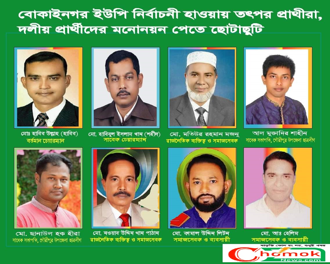 ইউপি নির্বাচন নিয়ে তৎপর বোকাইনগর ইউনিয়নের প্রার্থীরা সুপক রঞ্জন উকিল গৌরীপুর (ময়মনসিংহ) প্রতিনিধি- ময়মনসিংহের গৌরীপুর উপজেলায় জমে উঠেছে ইউনিয়ন পরিষদ নির্বাচনের গুঞ্জন। প্রতিটি গ্রামের মোড়ে, চায়ের দোকানে ও বিভিন্ন রাস্তা ঘাটে আলোচনার…